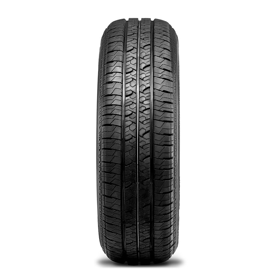 Banda de rodamiento con 3 ranuras centrales y hombros ranurados que ayudan a desalojar el agua con mayor eficiencia.